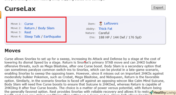 Виберіть рухи покемона.переконайтеся, що ці рухи сумісні з, власне, покемонами. Не варто тримати у одного покемона двох рухів одного типу (крім рідкісних обставин, коли це все ж доречно) - наприклад, Surf і Hydro Pump.. Все тому, що вам потрібно, щоб ваш покемон міг перемогти якомога більше інших покемонів. Поліпшення статів і відновлюють руху-відмінний варіант (Synthesis, Aromatherapy, Growth, Petal Dance - все це руху трав'яного типу, але лише одне з них використовується для атаки), так само як і руху типу Flamethrower і Overheat, які можуть бути використані в тих чи інших обставинах.- Атакуючий покемон повинен мати сильний рух (руху) свого типу. Таким чином він отримає бонус до ефективності рухів (STAB). Також не завадять руху, яким можна завдати шкоди тим типам, за якими не потрапити звичайною атакою покемона, в іншому ж випадку є ризик наштовхнутися на танкуючого покемона, якого вам буде не здолати. Деякі Атакуючі покемони використовують підготовчі рухи, що розганяють силу атаки до космічних значень, інші використовують рухи підтримуючого типу, зцілення або руху-світчі (дозволяють іншим покемонам зайняти їх місце в бою - на зразок U-Turn). Пріоритетність-це теж важливо, так як більш пріоритетні руху завжди повинні виконуватися до менш пріоритетних.