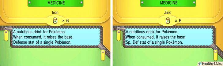 Купуйте для вашої команди якомога більше вітамінів і використовуйте їх перед EV-тренуванням.за кожну отриману вітамінку ваш покемон отримає збільшення EV на 10 для конкретного стану. Якщо у покемона немає EV взагалі, то 10 можна використовувати на стат. Якщо у покемона вже є EV, можете годувати його вітамінами, поки його статті не отримають 100 EV.- Якщо кількість EV більше або дорівнює 100, вітаміни ефекту не матимуть. Наприклад, Carbos дають вашому покемону 10 EV. Якщо ви використовуєте 10 Carbos не отримавши перед цим EV в швидкість, ваш покемон отримає 100 EV швидкості. Якщо у Вас вже є 10 EV швидкості, ви можете використовувати 9 Carbos. Якщо у Вас вже є 30 EV швидкості, ви можете використовувати 7 Carbos. Якщо у Вас вже є 99 EV швидкості, ви можете використовувати 1 Carbos, та й то дасть вам тільки 1 EV.