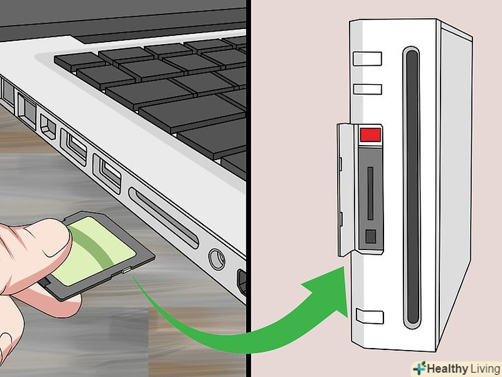 Вставте SD-карту в комп'ютер.Тонкий (довжиною 2,5 см) слот для SD-карт знаходиться на бічній панелі ноутбука або на передній панелі настільного комп'ютера. Відкриється вікно з вмістом SD-карти.- Ємність SD-карти не повинна перевищувати 2 ГБ.