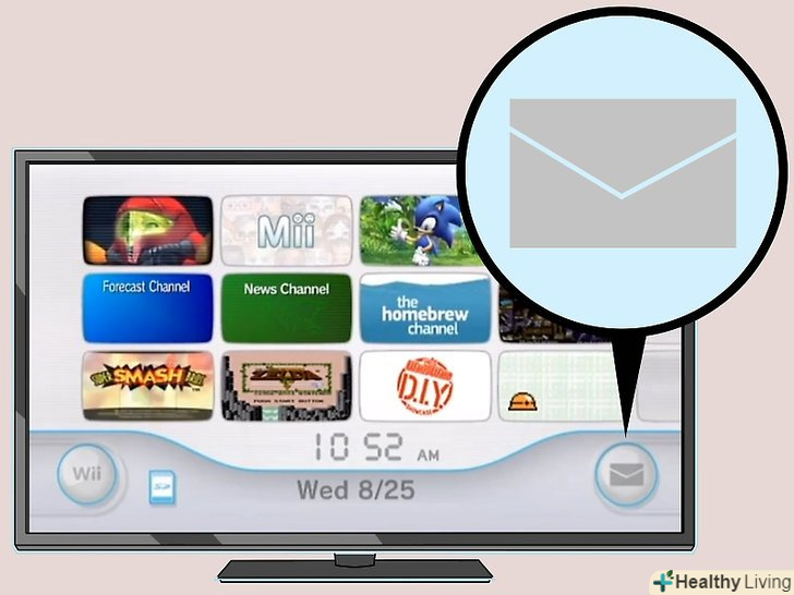 ВиберітьWii Message Board (повідомлення) і натисніть A. цей значок у вигляді конверта знаходиться в нижньому правому куті.