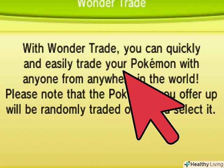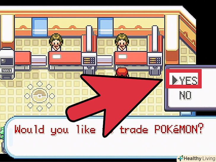 Обміняйте покемона.Одним з головних нововведень в процесі обміну є повний доступ до всіх ваших покемонів. Виберіть покемона для обміну, і він з'явиться у відповідному вікні. Коли інший гравець вибере покемона, той з'явиться в сусідньому вікні. Після того, як ви обидва погодитеся на обмін, покемони поміняються місцями.