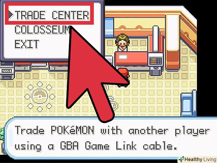 Увійдіть в кімнату єднання.кімната єднання розташована на другому поверсі кожного центру покемонів. Вашому напарнику по обміну немає необхідності використовувати той же центр покемонів, так як всі кімнати єднання об'єднані між собою.