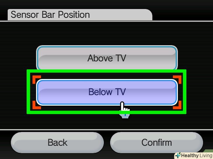 Виберіть позицію.виберіть "Above TV" (над телевізором) або " Below TV "( під телевізором) і натисніть «A».