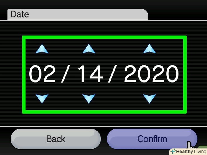 Задайте дату. виберіть спрямовані вгору або вниз стрілки, які розташовані над або під значеннями Місяця, дня і року, а потім натисніть «А», щоб змінити їх. Виберіть " Continue "(Продовжити), коли закінчите.
