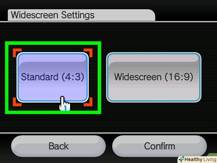 Виберіть широкоекранний режим. виберіть опцію "4:3 «для звичайного телевізора або» 16: 9 «для широкоекранного телевізора, а потім виберіть» Continue" (Продовжити).