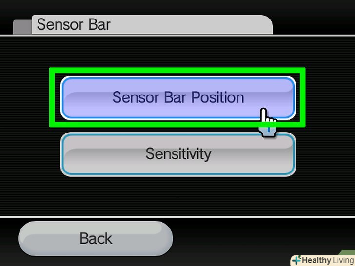 ВиберітьPosition (розташування) і натисніть A.відкриється меню.- Пропустіть цей крок, якщо не хочете змінювати положення планки, яке встановили під час налаштування програмного забезпечення Wii.
