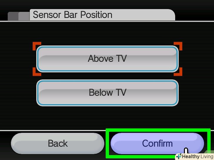 Вкажіть положення сенсорної планки. виберіть " Above TV "(над телевізором) або " Below TV "(під телевізором), натисніть «A», а потім виберіть " Continue "(Продовжити).