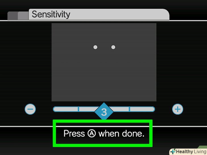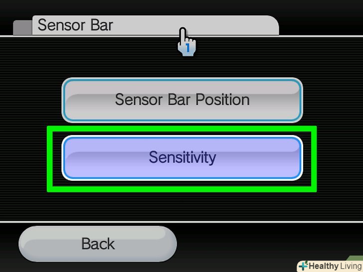 Відрегулюйте чутливість сенсорної планки. виберіть " Sensitivity "(чутливість), натисніть «A», а потім натисніть «+» або «-» на контролері, щоб збільшити або зменшити чутливість планки.