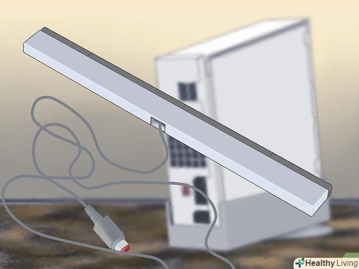 Підключіть до Wii сенсорну планку (Sensor Bar).вставте тонкий чорно-сірий кабель цієї планки в червоний порт на задній панелі консолі, а потім розмістіть планку під і перед телевізором. Зніміть кришки з липких накладок на нижній панелі планки, щоб закріпити її на місці.- Також сенсорну планку можна розмістити над телевізором.