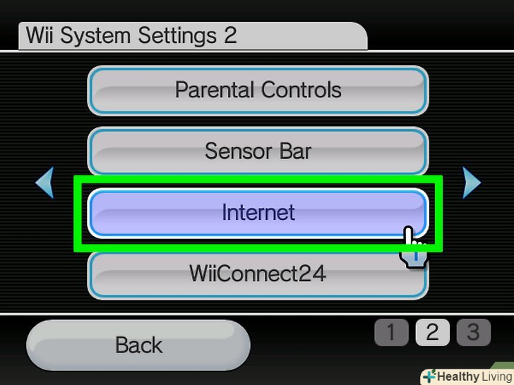Залиште сторінку налаштувань сенсорної панелі. виберіть " Back "(Назад) і натисніть "A", щоб повернутися на другу сторінку налаштувань консолі.- Якщо у вас є адаптер USB-Ethernet від Nintendo, підключіть його до порту на задній панелі консолі, а потім підключити кабель Ethernet до маршрутизатора і до адаптера.
