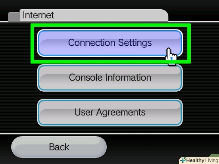 ВиберітьConnection Settings (параметри підключення) і натисніть A.відобразиться список з трьох підключень.- Якщо Wii ніколи не підключалася до Інтернету, значеннями всіх параметрів у номера підключення буде " No " (немає).