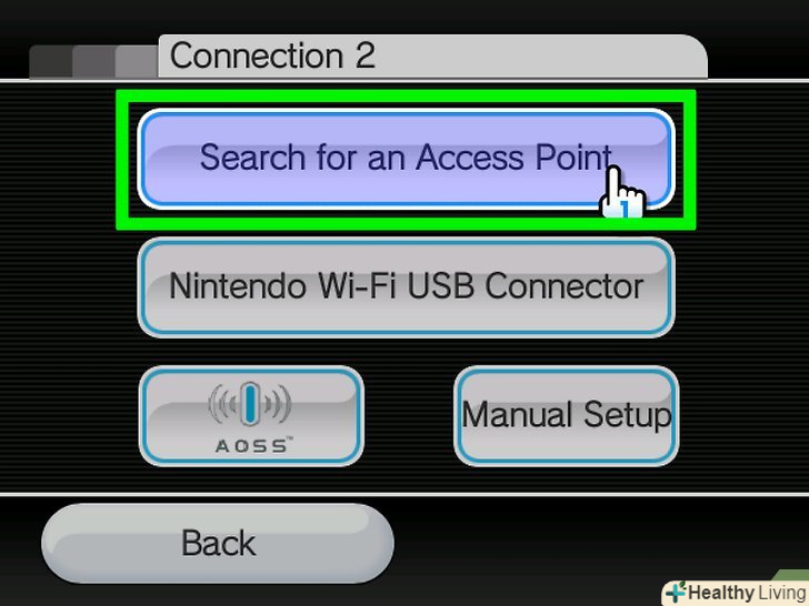 ВиберітьSearch for an Access Point (пошук точки доступу) і натисніть A.відобразиться список доступних мереж.