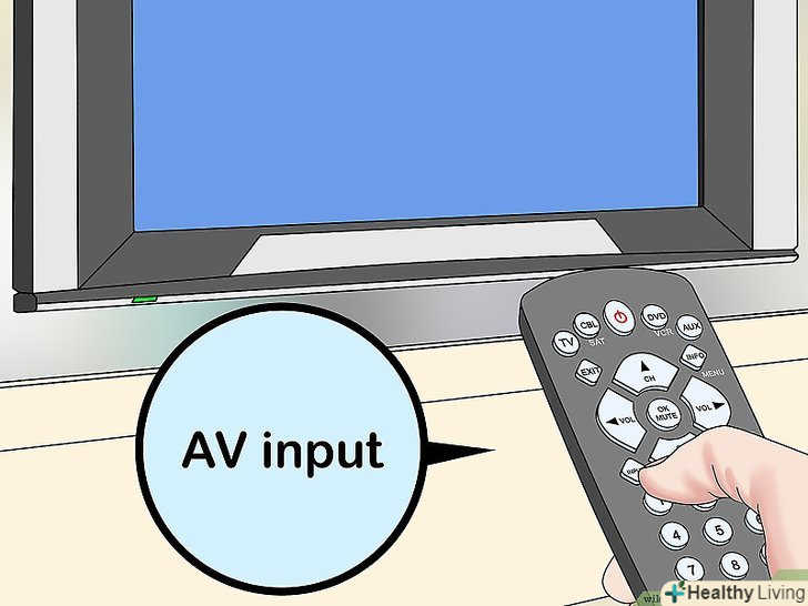 Перейдіть на сигнал з Wii.натискайте кнопку «Input» (вхідний сигнал) або «Video» (відео) на телевізорі або на контролері дистанційного керування телевізора, поки не налаштуєтеся на сигнал з консолі. Wii підключається до RCA-порту, який, як правило, маркується цифрами «1», «2» або «3».- Щоб з'ясувати номер RCA-порту, подивіться на цифру, зазначену біля жовтого, білого і червоного роз'ємів на задній або бічній панелі телевізора.
