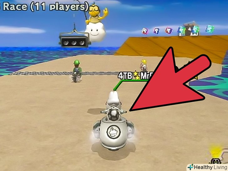Дізнайтеся призначення спеціальних предметів в грі.якщо вам попався гриб, потрібно його використовувати з користю, наприклад, як зазначено вище — для зрізу шляху. Банани потрібні для того, щоб захищати вас від снарядів, які летять ззаду. Не кидайте червоний снаряд в гравця, який їде перед вами, всього в декількох сантиметрах від вас, ви ж все одно його зараз переженете. Чекайте дійсно важливого моменту. Якщо ви створюєте вибух, зробіть так, щоб він зачепив інших гравців-інакше, який сенс? Якщо ви бачите, що в вас летить Блакитний снаряд, а у вас є червоний або золотий гриб, почекайте, поки снаряд долетить до вас - і тільки тоді використовуйте гриб. Згодом ви навчитеся все робити в правильне для цього час. Ви можете спробувати сповільнитися і збити інших гравців з дороги, влаштувати вибух і кинути їх в його епіцентр. Дивіться, не постраждайте самі. Якщо у вас є мега-гриб, який перетворює вас на гіганта, або зірка Starman, яка робить вас невразливим і швидким, врізайтеся в інших гравців — адже вам нічого не страшно. Якщо над вами штормова хмара-відразу ж врізайтеся в одного і гравців, щоб хмара перейшла на них. Інакше в вас вдарить блискавка, що вас значно сповільнить. Пам'ятайте, що інші гравці теж будуть використовувати всілякі предмети, щоб уповільнити вас. Ви будете завжди бачити попередження, коли на вас летить один з таких предметів.