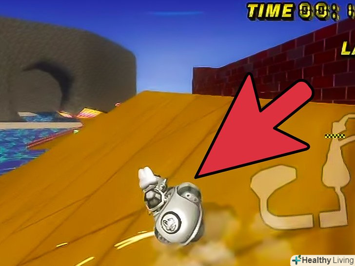 Навчіться застосовувати різні хитрощі.існує нова техніка застосування хитрощів в новій версії гри Mario Kart Wii, яка була недоступна в старих версіях ігор Mario Kart. Просто потрібно потрясти пульт Wii вгору, вниз, вліво або вправо, коли ви з'їжджаєте з дороги або підстрибуєте, після поява блакитних або кольорових стрілок на екрані, щоб застосувати спеціальну комбінацію. Після приземлення на дорогу, вам додасться трохи швидкості. Не трясіть пульт в повітрі, робіть це трохи раніше. Ви почуєте звук, що виходить з пульта, значить, ви все зробили правильно.