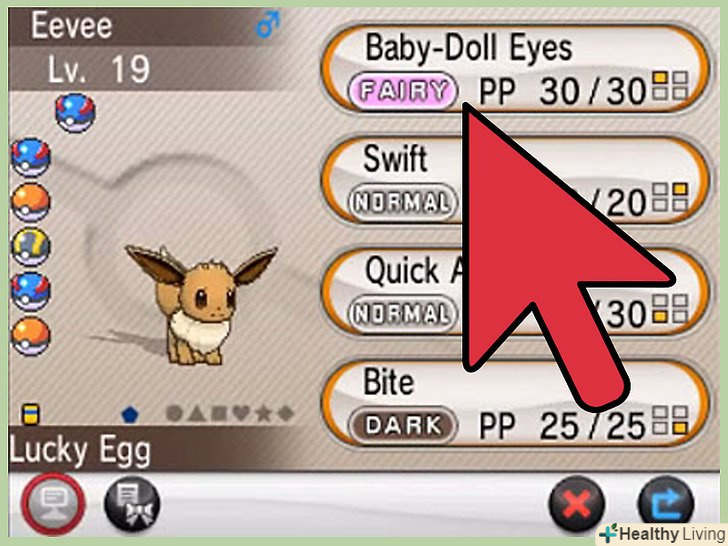 Нагодуйте Іві поке-слойками.у міні-грі Pokémon-Amie, нагодувавши Іві поке-слойками, ви підвищите його рівень прихильності. Чим смачніше буде слойка, тим більше прихильності ви отримаєте.