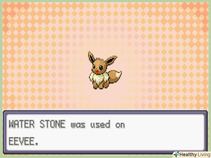 Застосуйте камінь.коли отримаєте бажаний камінь, необхідно дати його Іві. Після цього відразу почнеться еволюція і через кілька миттєвостей у вас буде ваш новий Вапореон, Джолтеон або Флареон. Еволюція не оборотна і може бути виконана на будь-якому рівні.- Після еволюції камінь зникне.