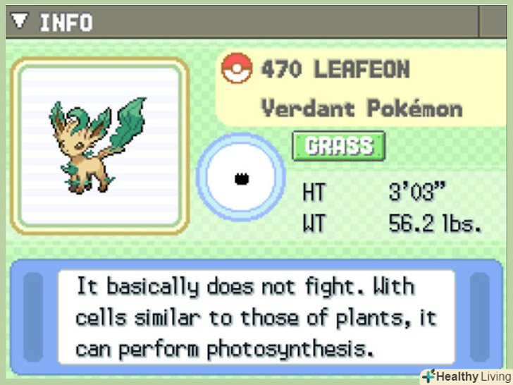 Знайдіть моховий камінь.моховий камінь покращить Іві в Леафеона. Один моховий камінь можна знайти в кожній грі.- Diamond, Pearl і Platinum-Мшистий камінь в лісі Етерна. Ви можете виконати еволюцію в будь-якому місці в цьому лісі, за винятком Старого палацу.