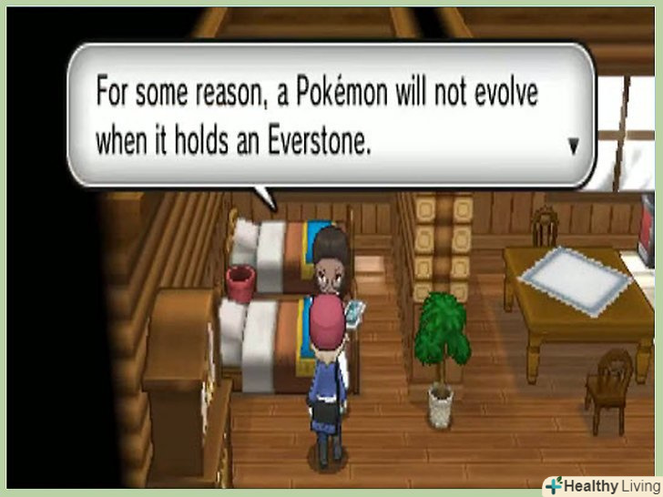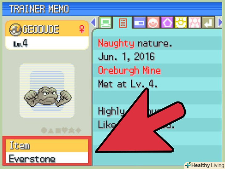 Роздобути Вічнокамінь.цей спеціальний предмет використовується в якості більш ефективного способу перешкодити покемону еволюціонувати. Поки покемон тримає Вічнокамінь, він не буде еволюціонувати, які б умови не були для цього виконані.- Вічнокамні з'являються тільки в іграх другого покоління і старше.