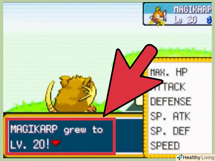 Щоб еволюціонувати Меджікарпа, його необхідно прокачати як мінімум до 20 рівня.Меджікарп почне намагатися еволюціонувати, як тільки досягне 20 рівня. Ви можете перешкодити йому еволюціонувати, затиснувши кнопку " в " під час еволюції або ж дозвольте йому перетворитися в Гярадоса.- Прочитайте наступний розділ, щоб дізнатися про те, як легко прокачати Меджікарпа до 20 рівня.