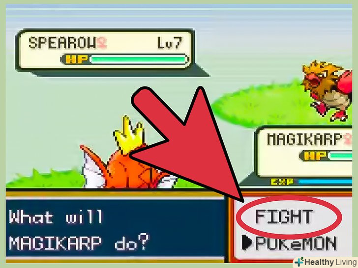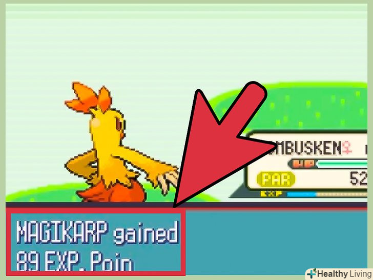 Відправте Меджікарпа в битву, а потім відразу поміняйте його на іншого покемона.вам доведеться робити це досить часто, так як на низьких рівнях Меджікарп не володіє атакуючими здібностями. Якщо Меджікарп буде хоча б в одному з раундів, за підсумком бою він отримає частину досвіду.