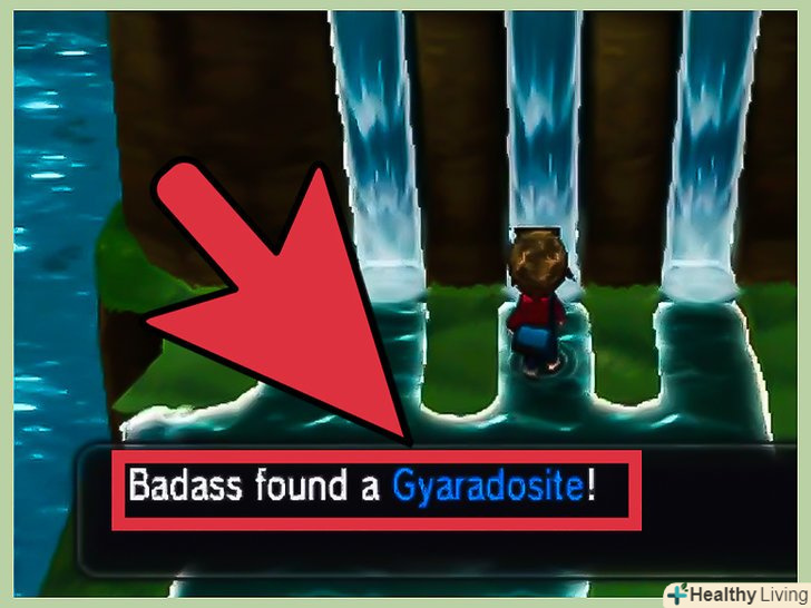 Знайдіть Гярадозит.це Мега камінь, необхідний для еволюції Гярадоса в свою мега форму. Місце розташування Гярадозіта залежить від версії гри. У місці знаходження Гярадозіта ви побачите клаптик сяючої землі.- Версії X і Y. Ви можете знайти Гярадозит в місті Куривей, поруч з трьома водоспадами н.