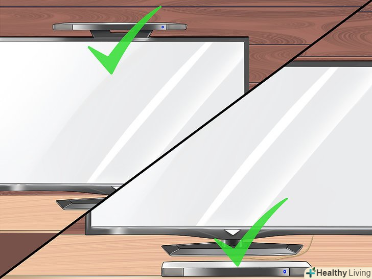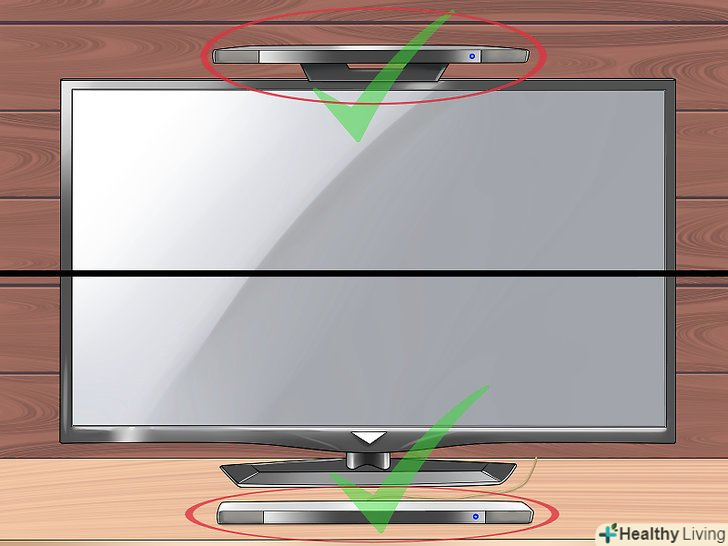 Переконайтеся, що сенсорна планка встановлена над або під телевізором.сенсорна планка відповідальна за те, як пульт Wii вказує на елементи на екрані. Ця планка функціонує найкращим чином, тільки коли знаходиться над або під телевізором.