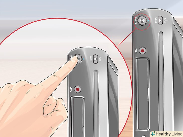 Переконайтеся, що на консолі не запущена гра.в іншому випадку у вас не вийде синхронізувати пульт з приставкою. Перед синхронізацією перейдіть в Головне меню Wii.- Якщо синхронізація не відбувається, вийміть з консолі всі ігрові диски.