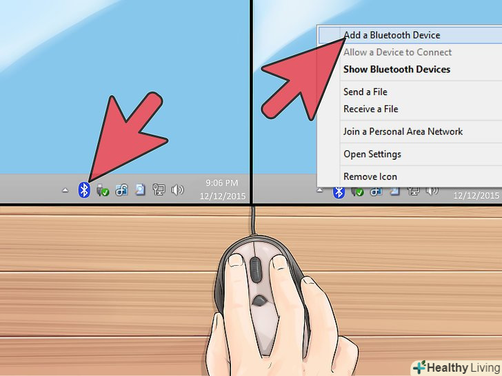 Клацніть правою кнопкою миші по значку Bluetooth на панелі завдань і в меню виберіть "Додати пристрій".