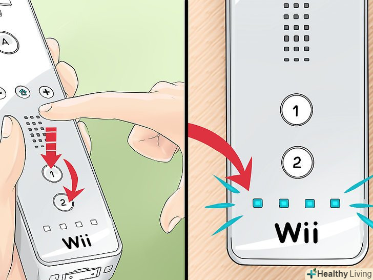 Натисніть одночасно кнопки «1» і «2 " на пульті Wii, щоб індикатори почали блимати.