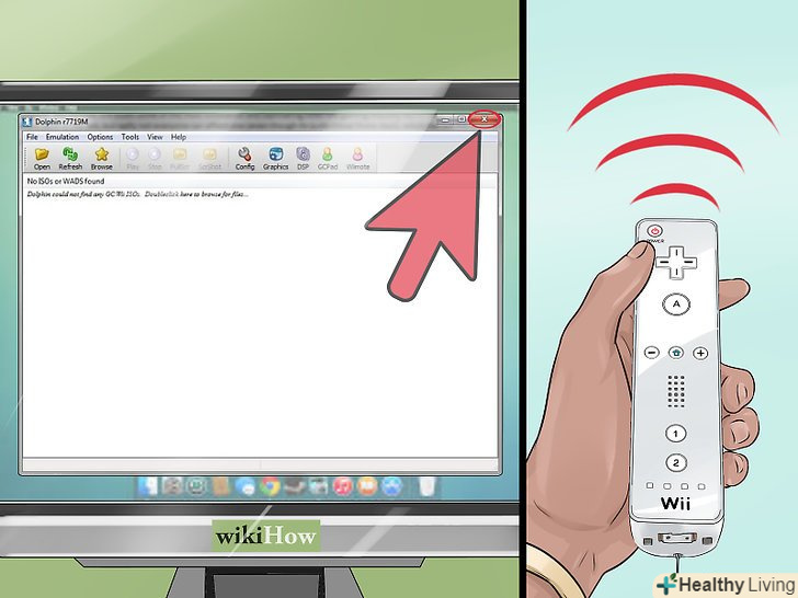 Перед синхронізацією пульта з комп'ютером закрийте Dolphin.в іншому випадку меню вибору контролера може не відкритися. Закрийте Dolphin, вимкніть пульт Wii (для цього клацніть по ньому правою кнопкою миші в меню Bluetooth і виберіть опцію «Видалити пристрій»), а потім спробуйте синхронізувати пульт з комп'ютером.