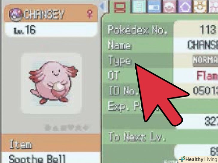 Перевірте поточний показник щастя.визначити рівень щастя Ченсі досить важко, так як точне число ніде в грі не вказано. Але ви можете поговорити з певним персонажем і визначити рівень щастя за сказаною ним фразі. Перевіряючи показник щастя, переконайтеся, що Ченсі стоїть у вашій групі першої. Наступні фрази вказують на те, що рівень щастя Ченсі знаходиться в межах 200-250:[1]- Покоління II: Поговоріть з дівчиною біля магазину велосипедів в Голденроде «" I get the feeling that it really trusts you "(У мене таке відчуття, що вона тобі дійсно довіряє). Аналогічно і в іграх HeartGold і SoulSilver.