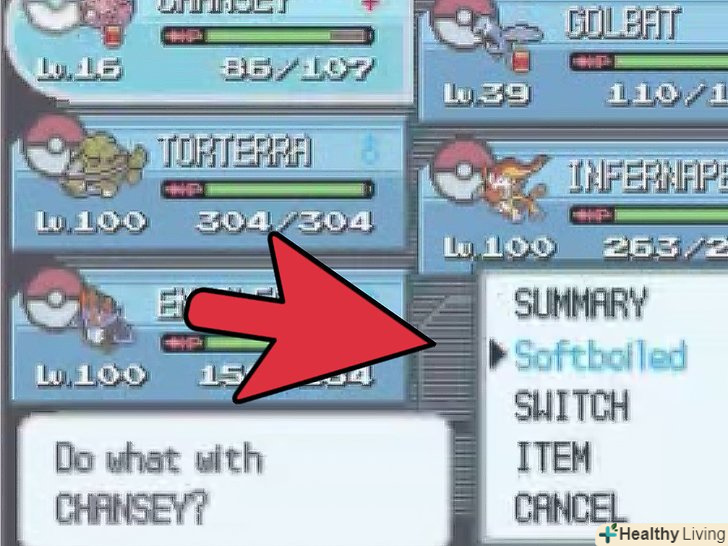Не використовуйте предмети лікування.це найважча частина підвищення щастя, так як використання лікуючих предметів під час бою сильно зашкодить вашому показнику щастя. Наприклад, використання Листа життя може привести до зниження щастя аж на 20 одиниць (залежить від поточного показника щастя), в той час як лікувальна пил може знизити щастя на 5-10 одиниць.- Постарайтеся лікувати покемонів лише в Центрах покемонів, так як це ніяк не вплине на показник щастя Ченсі.