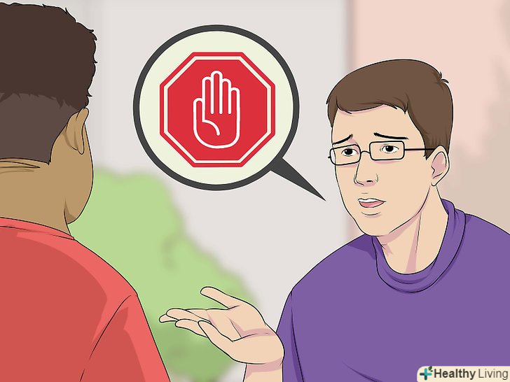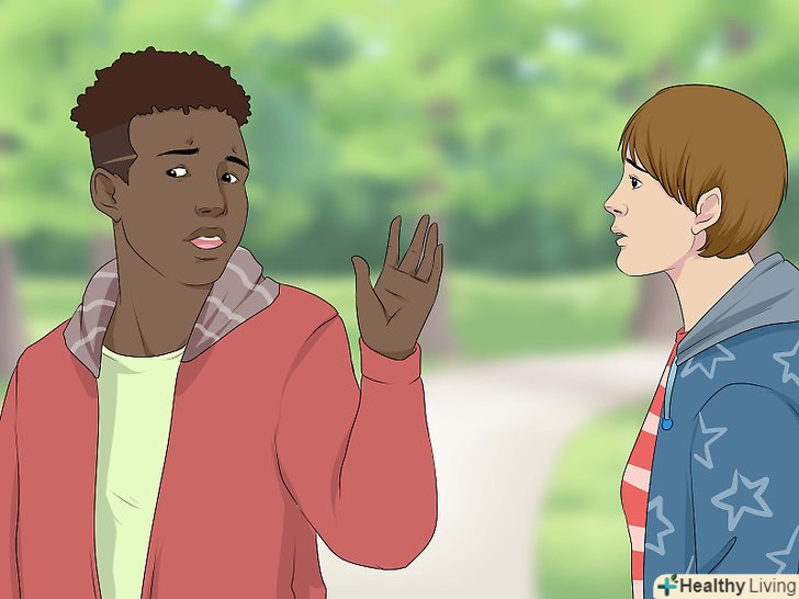 Заручіться допомогою. якщо вам незручно говорити з другом, ви можете попросити своїх батьків зв'язатися з його батьками. Можливо, ви захочете використовувати такий варіант, якщо відчуваєте загрозу з боку людини. В іншому випадку варто спочатку спробувати самостійно впоратися з ситуацією. [15]- Попросіть своїх батьків повідомити батькам друга про ситуацію та/або про те, що ви більше не хочете проводити час з цією людиною. Можете сказати: "Знаю, я намагався віддалитися від Віті, але він не залишає мене в спокої. Не могли б ви, будь ласка, поговорити з його батьками?»