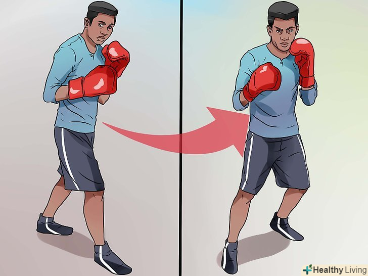 Навчіться приймати правильну позу. розставте ноги далі, ніж на ширину плечей. Якщо ви правша, нахиліться лівою стороною тулуба до груші і підніміть п'яту правої ноги. Якщо ви лівша, зробіть навпаки. Злегка зігніть ноги в колінах. Підтягніть руки до обличчя, не задираючи плечі і лікті.