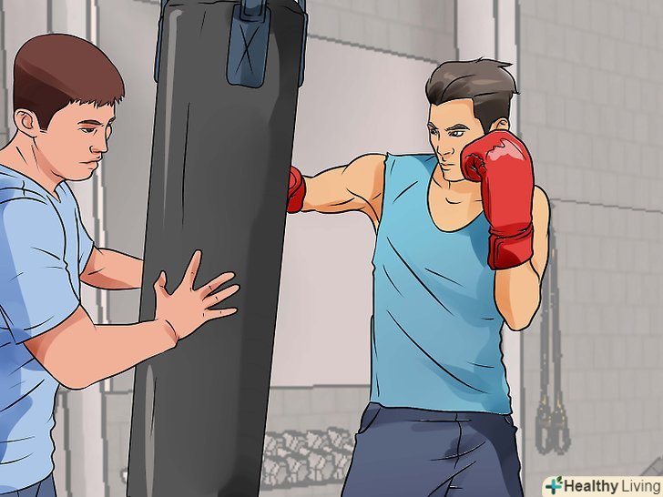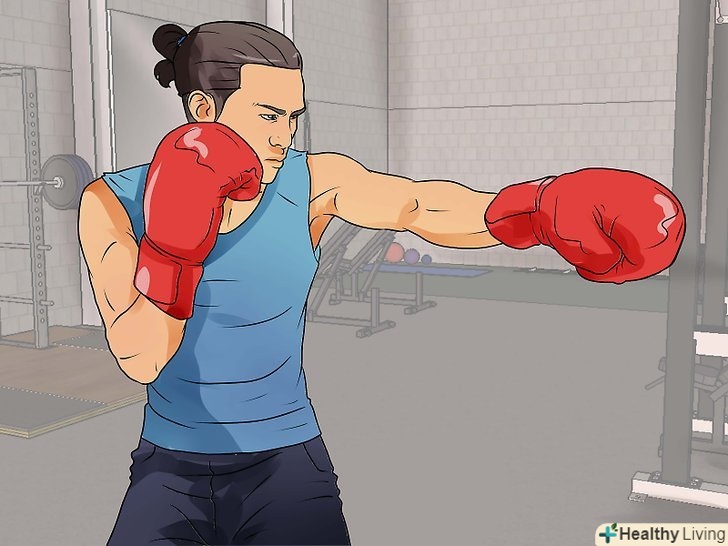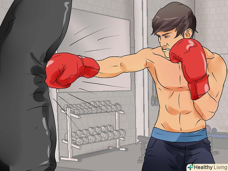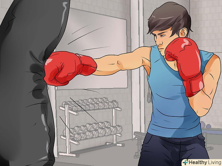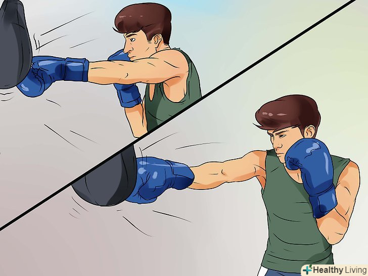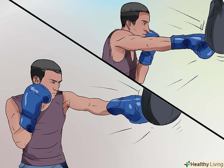 Одягніть рукавички для боксу. такі рукавички активно використовуються під час тренувань. Вони набиті достатньою кількістю матеріалу, який захищає руки від травм. Купіть якісні рукавички із застібкою на липучках-не економте! Ці рукавички ви будете використовувати кожен день. Рукавички з якісного матеріалу (з хорошої шкіри і пінистого матеріалу всередині) прослужать довше і будуть надійно захищати кисті.
