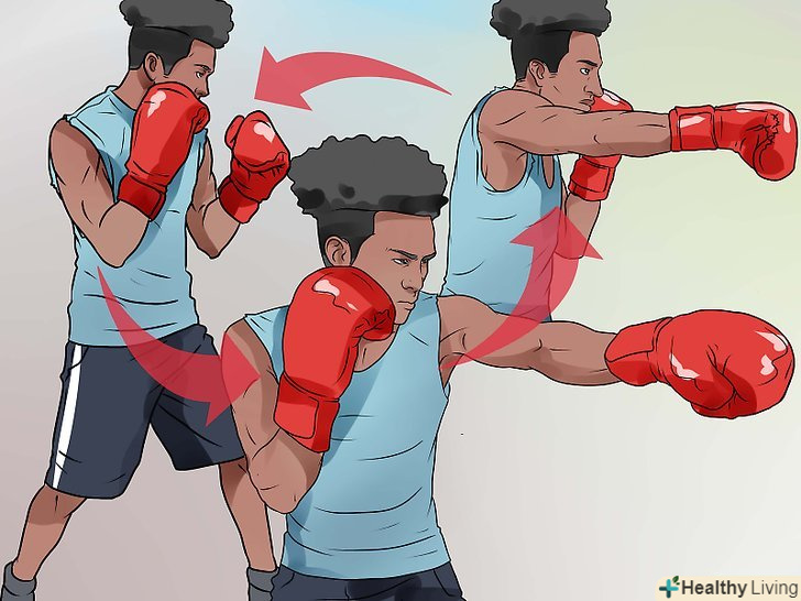 Освойте хук. прийміть вихідне положення. Поверніться на п'яті лівої ноги, якщо ви правша. Потім поверніться через ногу і стегно. У цій же час витягніть ліву руку горизонтально повз корпусу. Злегка підніміть лікоть. Тримайте праву руку в обличчя для захисту. Відведіть руку назад у вихідне положення. [10]