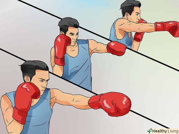 Працюйте над витривалістю. виділіть на підвищення витривалості 15 раундів по 2 хвилини з хвилиною відпочинку між ними. Попросіть кого-небудь потримати для вас грушу. У першому-п'ятому раундах станьте на відстань 25-50 сантиметрів від груші і почніть безперервно бити грушу джебамі. У 6-10 раундах робіть те ж саме, але замініть джеби на кроси. У 11-15 раундах замініть кроси на поєднання з двох ударів. [14]- Не бийте занадто сильно — намагайтеся зробити якомога більше ударів в один раунд.