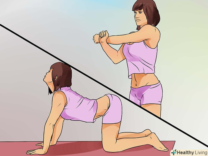 Виконайте вправи на розтяжку. повільно потягніть м'язи спини, плечей, трицепси і м'язи живота. Це дозволить позбавити вас від болю в м'язах після тренування і прискорить відновлення. [15]