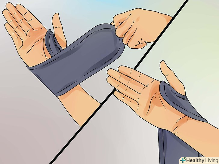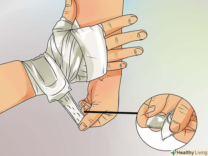 Закріпіть липучку. коли закінчите з обмотуванням, закріпіть липучку. Це допоможе вам зафіксувати зап'ясті. [2]