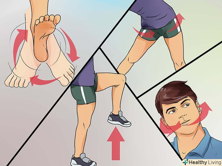 Опрацюйте суглоби. почніть розминку з обертання суглобів — це дозволить змастити їх і підготувати до навантажень. Покрутіть ногами, колінами, стегнами і плечима. В кінці повращайте кистями.- Покрутіть ступні з невеликим радіусом. Це можна робити за годинниковою стрілкою і проти, сидячи або стоячи.