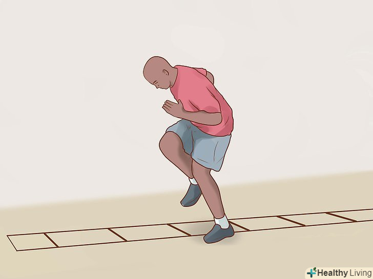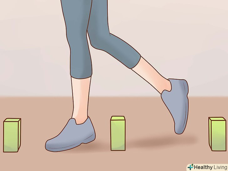 - Почніть з бар'єрів висотою в 15 сантиметрів. Якщо це все одно ще високо, тоді візьміть предмет поменше або просто перестрибуйте уявні бар'єри. Ви зможете збільшити висоту бар'єрів після декількох тижнів виконання цієї вправи.