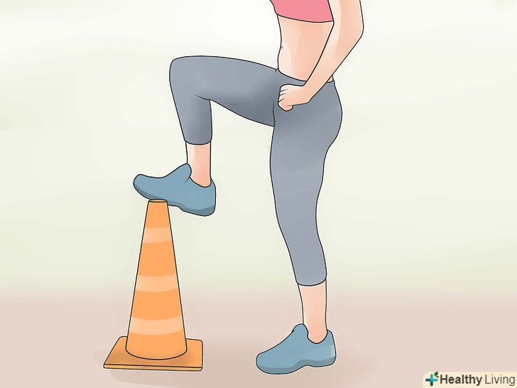 Вправа з конусами. поставте один конус перед собою. Високо підніміть одну ногу, а потім акуратно доторкніться до верхівки конуса м'ячем або ногою, а потім поверніться в початкове положення. Повторіть цю вправу іншою ногою. Чергуючи ноги, зробіть три підходи по 30 секунд.- Дана вправа зміцнює м'язи стопи і щиколоток. Воно також зробить вас швидше і поліпшить координацію ніг.
