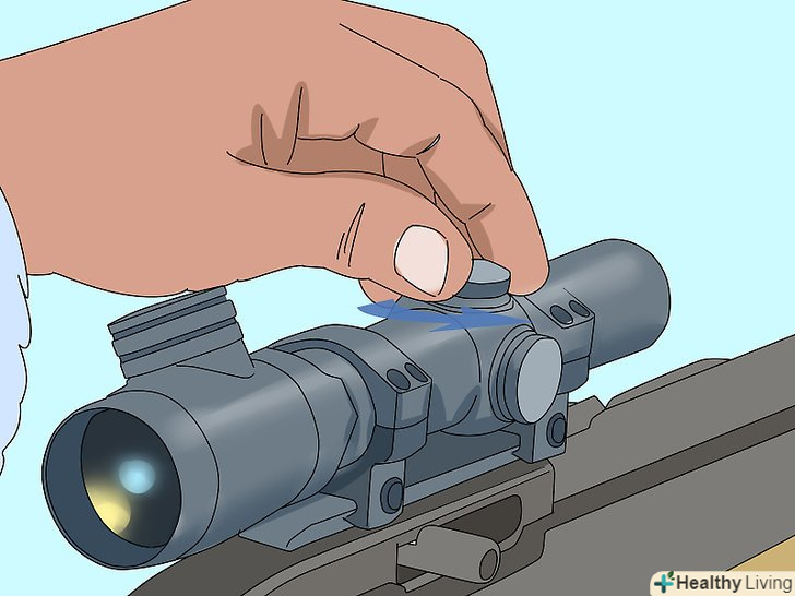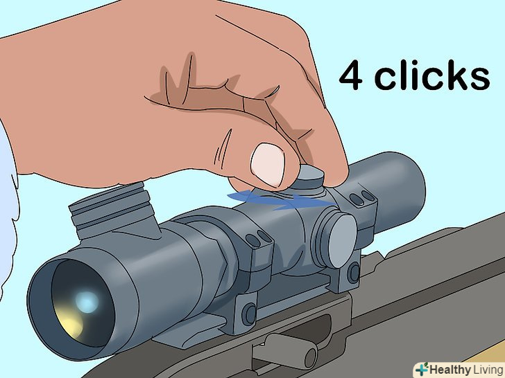 Регулюйте дуже дрібними кроками. на більшості прицілів, з кожним клацанням і поворотом ручки приціл рухається на ¼ дюйма, тому чотири клацання ручки будуть приблизно відповідати дюйму (2,54 см). Зверніться до Інструкції користувача, яка додається до прицілу, щоб бути впевненим у правильному регулюванні, але завжди пересувайте потроху.