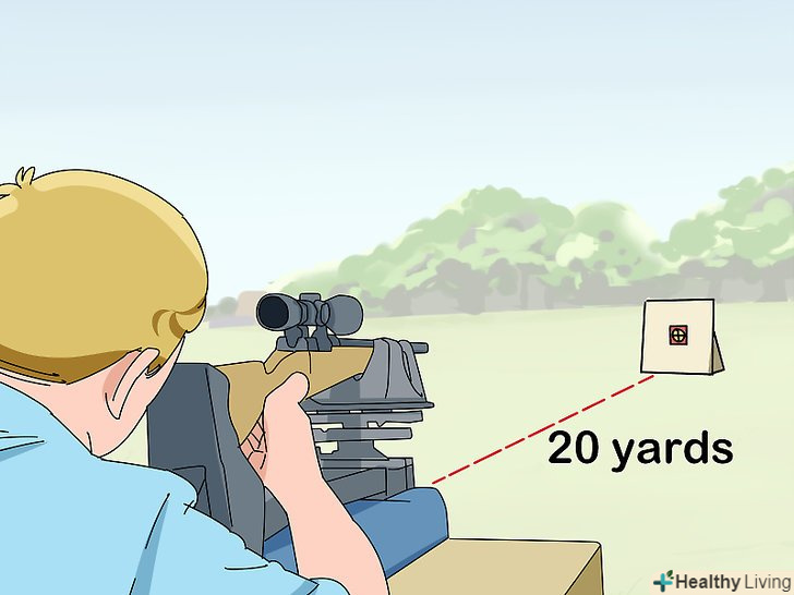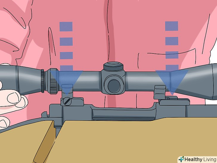 При необхідності для подальшого регулювання застосовуйте наведення через канал ствола. якщо у вас є лазерний коліматорний приціл, він заощадить вам багато боєприпасів і не дасть сильно втомитися плечу. Якщо ні, віднесіть свій приціл в найближчий магазин спорттоварів, і там вони зможуть вивірити приціл наводкою через канал ствола. Це зовсім недорога процедура, результатом якої буде досить точний приціл.- Коли зброя наведена через канал ствола і готова стріляти, ви все одно повинні самі перевірити його, застосовуючи ці вказівки, і зробити необхідні коригування. Через різні параметри користувачів можливі деякі відмінності.
