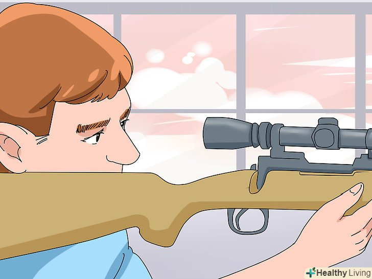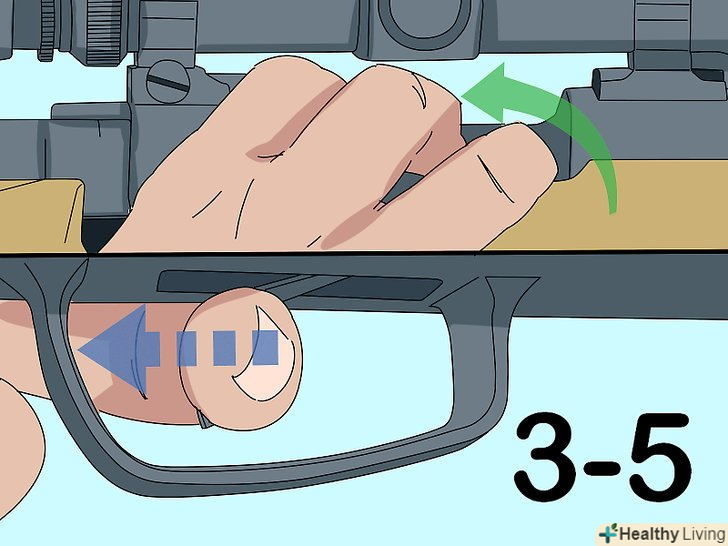 Зарядіть зброю і зробіть три-п'ять пострілів із застосуванням прицілу. дочекайтеся сигналу " до бою!"і подивіться через свій приціл, наводячи його на мішень. Притисніть щоку до магазину і зберігайте в прицілі те ж зображення, як ви це зазвичай робите. Зніміть з запобіжника. Після закінчення свого видиху утримуйте частку секунди, потім жорстко без тремтіння натисніть на курок для самого точного пострілу. Для найбільш точного першого проходу повторіть 3-5 разів. [1]