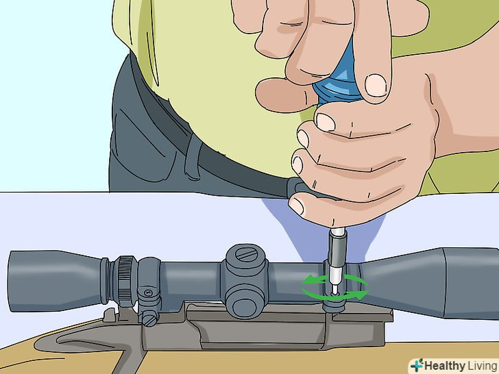 Прикріпіть основу і кільця на приціл. Візьміть підставу для кріплення і монтажні кільця хорошої якості, щоб бути впевненим, що ваш приціл буде міцно триматися довгі роки. Найчастіше краще витратити трохи більше часу на кріплення, ніж на сам приціл, щоб вам не довелося постійно регулювати, коли ви вже пристрілялися.- Для установки кріплення, в основному вам потрібно затягнути гвинти в кріплення згідно інструкції виробника. Краще зробити це в хрестоподібному порядку так, щоб не тягнути приціл в ту чи іншу сторону. Спочатку вкрутіть гвинти вільно так, щоб ви могли підтягнути їх при необхідності.