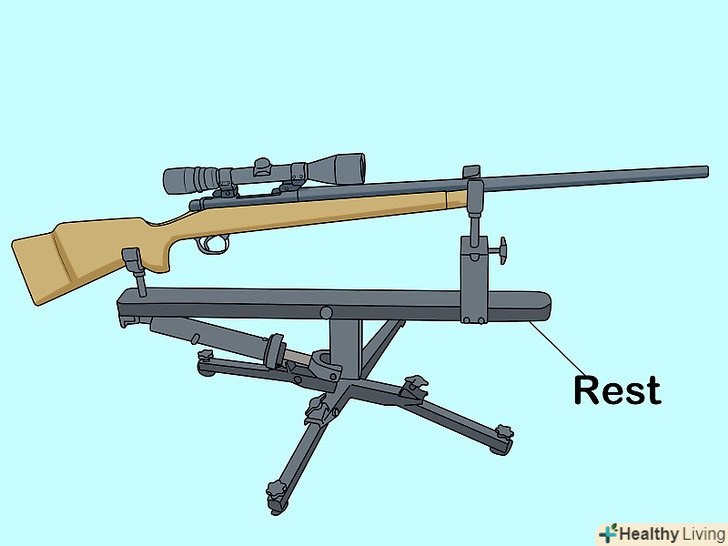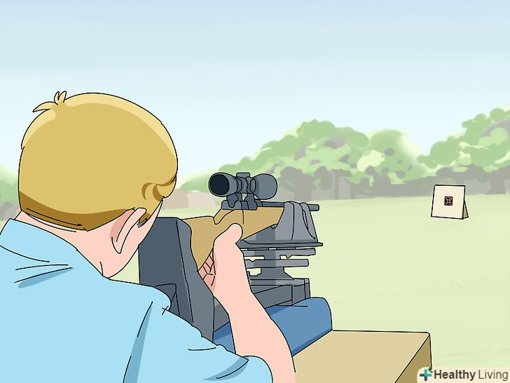 Закріпіть зброю в спеціальному верстаті для стрільби. Коли ви обнуляєте зброю, необхідно максимально виключити з зрівнювання людські помилки. Іншими словами, ви не можете не потрапити в ціль. Щоб домогтися найбільш точного збігу, Вам слід спеціально для цієї мети встановити зброю в верстат для стрільби, які продаються в більшості магазинів спортивних товарів або можна взяти напрокат в найближчому збройовому клубі. Все більше причин відправитися на полігон.- Якщо у вас немає твердого верстата для стрільби, прийміть якомога більш стійке положення для стрільби. Навіть якщо взяти пару рівних книг, або взуття або піджак, то можна покласти зброю на них і стріляти більш точно. Всього лише переконайтеся, що все, на що ви поклали, на відстані від остова затвора.