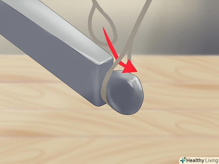 Причепіть інший кінець тятиви на місце. підніміть вільну петельку тятиви і причепіть її до потрібної виїмки.- Переконайтеся, що петля тятиви нижче петлі пристрою. У вас це займе деякий час і зусилля, щоб розташувати їх таким чином.