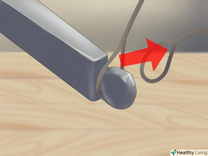 Приберіть інший кінець пристрою. повільно приберіть інший кінець пристрою з другої виїмки, робіть це акуратно, щоб не змістити або послабити тятиву- Пристрій і тятива, швидше за все, заплутаються в цей момент, створюючи деякі труднощі.